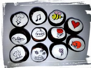 Játszani meg úgy lehet vele, hogy beteszem a gesztenyéket egy kis zsákba, ahonnan húzhatnak pl 5 gesztenyét és azok képeiből kerekedhet a sztori.