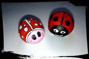 Ha valaki nagyon belemerül a festésbe, akkor az egész gesztenyét lealapozhatja fehérre, majd alkoholos filctollal megrajzolja pl a katica részeit és azután jöhet a színezés. Ez a két kis példány is így készült:) De bármit lehet belőle készíteni, csak fantázia kérdése.