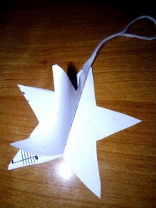 Végül a két fehér hátoldalt is összeragasztjuk és szétnyitjuk a csillagot.